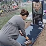Hamile bir kadın kocasının mezarının önünde durur